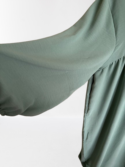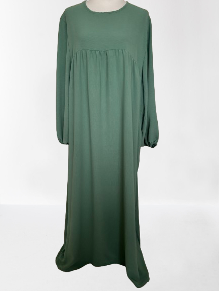 Laissez-vous séduire par l’élégance naturelle de notre Abaya Jazz Manches Bouffantes Vert Eau. Confectionnée dans un tissu Jazz fluide, léger et opaque, elle allie pudeur et raffinement au quotidien.