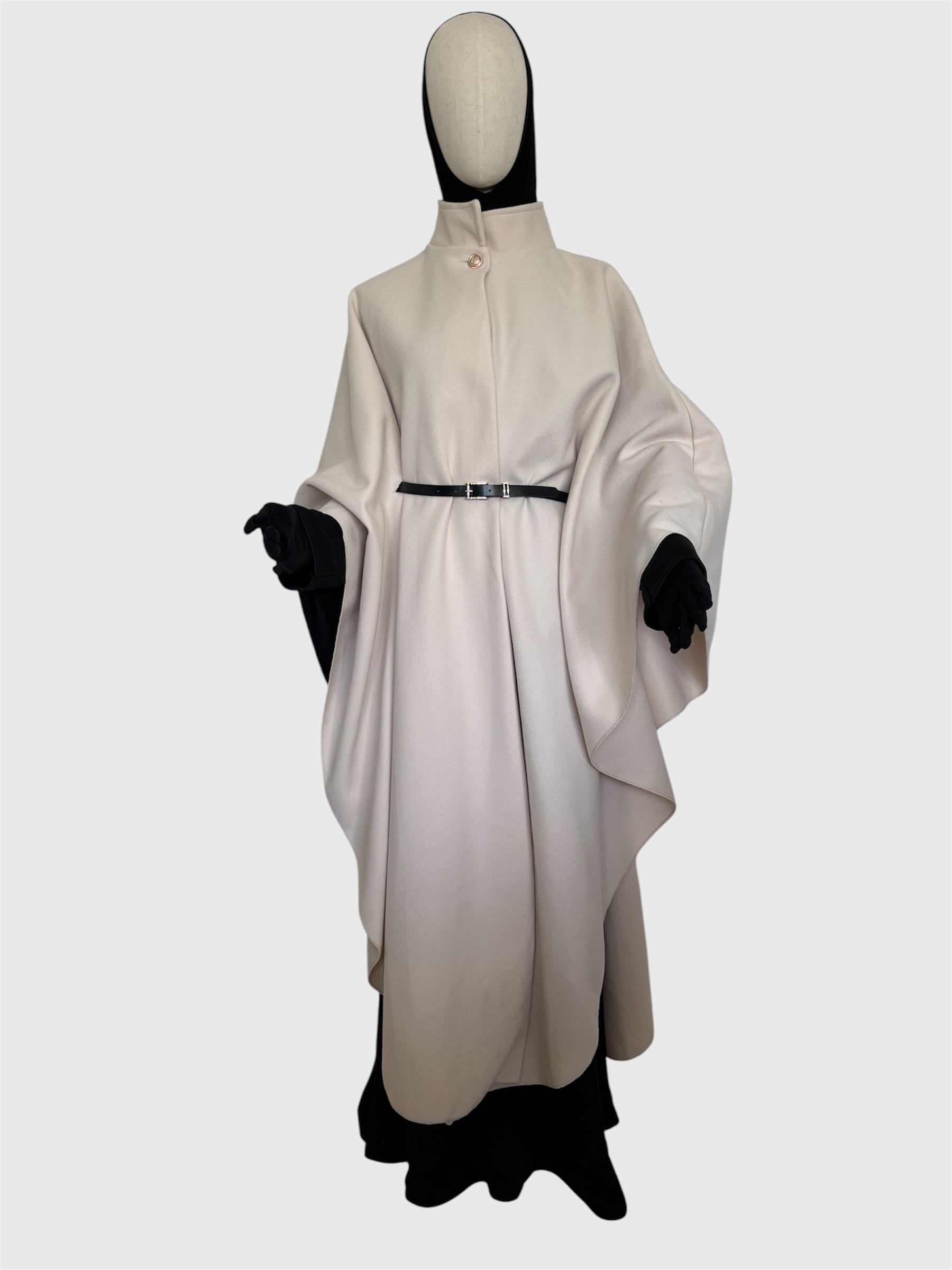 Apportez de l’élégance et de la douceur à vos tenues avec cette cape poncho femme crème. Sa couleur claire illumine la silhouette et s’accorde facilement avec toutes vos abayas ou robes longues.