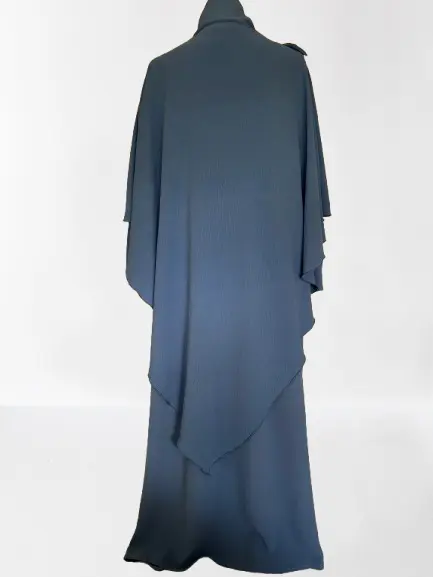 Composé d’une abaya ample à manches bouffantes et d’un khimar assorti, cet ensemble assure une couvrance parfaite à l’avant comme à l’arrière. Sa coupe généreuse permet de convenir à toutes les morphologies, du 36 au 50, avec confort et fluidité.